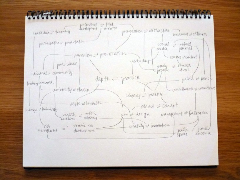 Written for RMIT Design Research Institute Symposium II Deep Practice: deepening knowledge and innovation through design practice. March 25 and 26, 2011. Curated by Mark Burry and Terry Cutler. The first symposium in the series of three was entitled Designing solutions to wicked problems: a manifesto for transdisciplinary research and design. The third symposium is yet to come.