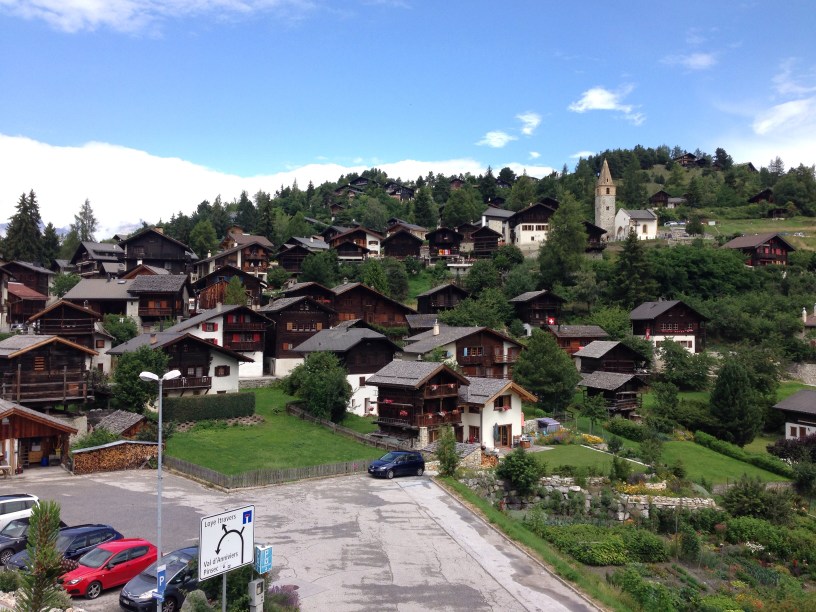 As with many other Swiss villages, the Vercorin architecture is protected, and the wooden structures stand the test of time. Many bear charming textual inscriptions or images depicting the era or the conditions of their construction, with the owners’ names, the year, and one or two words about how proud and happy they are to have created a home among this community. These date back hundreds of years, and emphasise the figure-ground typology which I’ve only ever experienced before on Greek islands: you can quite easily wander into the private space surrounding a home, as you stroll through the village among regularly formed pitch-roofed wooden houses scattered neatly and without obvious front or rear land space. Everyone greets everyone with an animated “Bonjour!” across the 500-person village – and indeed, across the region. Well-maintained buildings are the mark of the affluence I experienced in the UK’s Lake District, and there is strong local pride which is typical of the Swiss culture. One rainy evening I unexpectedly attended an opening at the aptly named Galerie Miniscule, and was delighted to find myself discussing contemporary sculpture with several local artists who were present.