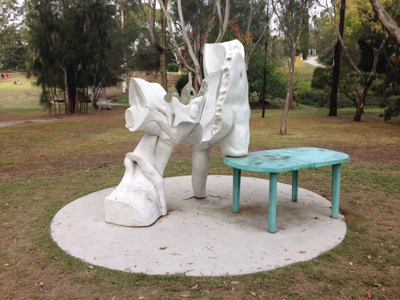 A muscular horse. A coral in section. A distended plinth. Suburban Australian vernacular. Human skin. Lightness. Weight. The lightness of a plastic table, the inevitability of its crushing demise, the bodily sensation of this inevitability, almost the very sound of buckling under the weight. The lightness in the slenderer of the two descenders, a resting arm, a child’s thigh. A heart dissected. The hammer, anvil and stirrup reimagined as ventricular glasswork. The potential for movement. Complexity, organism, abstraction. Orifices unexplained, enveloping, not gaping, inviting. Living conduits interrupted. Tapped ends, classical form. Vagina, penis, eye, ear, muscle. One clean break suggesting articulation, a point of potential movement, no doubt serving some practical purpose. Aporetic composition. Intricate marrow, the living tissue inside solid bone. Flow as the basis of strength, of all that is solid.