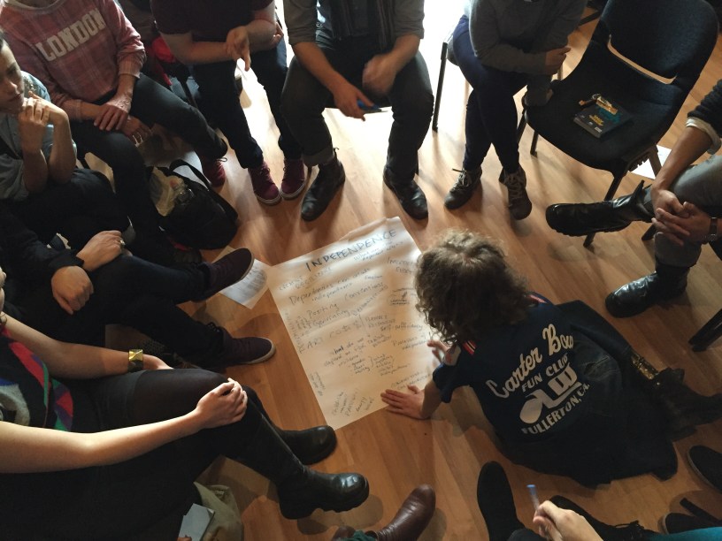 For the afternoon I offered a workshop on negotiating the tension between deep practice and experimental practice – a negotiation which is in itself constitutive of independent practice. We asked ourselves where we’re at right now in our practice: are we heavily immersed and craving new connections, new modes of play? Or are we readily finding collaborators and experimental modes, and craving instead the space and time to find real rigour and focus? Having identified this no matter how tentatively, we broke into three groups to exchange techniques on how we currently achieve this and how and where we’d like to push ourselves. Deep practice can be hard to experience: it involves a clear consciousness of what you’re trying to achieve, as well as the means for distilling that consciousness into a set of focuses, activated by the techniques that work for you. These of course change over time and are often discovered experimentally, bridging the written and screen-based ways of working with the tactile, the present and indeed the visceral. Striking a balance between the two is independent practice itself: the commitment to responsiveness, the need for nourishment, the quest for flow. I found these discussions immensely rewarding, challenging and quite delicious in sparking new ways of working, and I very much look forward to continuing them.