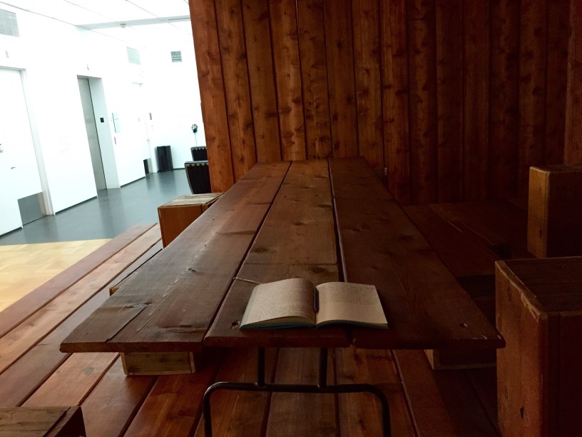 For my own act of writing in public this evening, it was first and foremost something I was compelled to do. I had just this afternoon arrived in a new city and within a few tweets’ time I had my evening plans sorted. I explored the work of a favourite artist and then intended to wander the rest of the gallery space before enjoying sunset jazz in the sculpture garden. Then the workspace arrested me, and the text on the didactic panel made it clear that the space was intended for productive use. And so, I made myself comfortable – and wrote. And wrote. And wrote.
