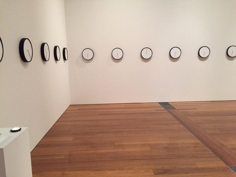 Only when you approach the face of each clock can you make out what each device is measuring. The clue to each is a white-on-white text – DEATH, CANCER (LUNG). DEATH, CORONARY HEART DISEASE. DEATH, DIABETES. EMISSION, CO2, EMISSION, METHANE – and each time the hand sweeps across the face, there’s been another death, another kiloton, another irreversible event.