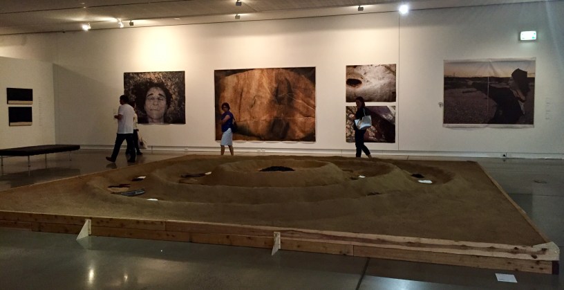 The most arresting of these works seizes you as soon as you step into ARTLANDS’ key space: the massive sand painting Disambiguation by Wiradjuri artist Aleshia Lonsdale…
