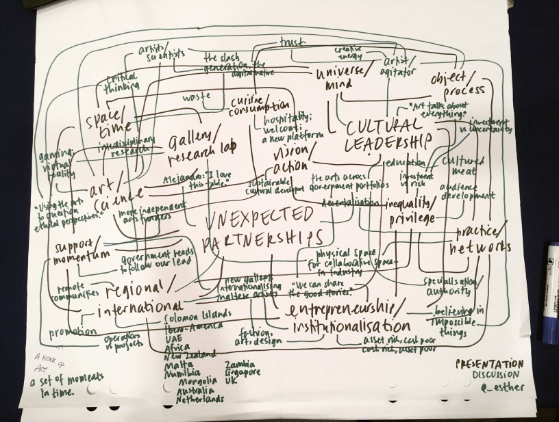 IMAGE: My live documentation of the Unexpected Partnerships longtable session in which both Tony Grybowski and I participated, at the 2016 IFACCA World Summit, facilitated by Magdalena Moreno.