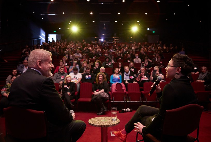 Image: Senator Mitch Fifield, Minister for the Arts, and Esther Anatolitis at Future/Forward 2018. Photograph by Zan Wimberley.
