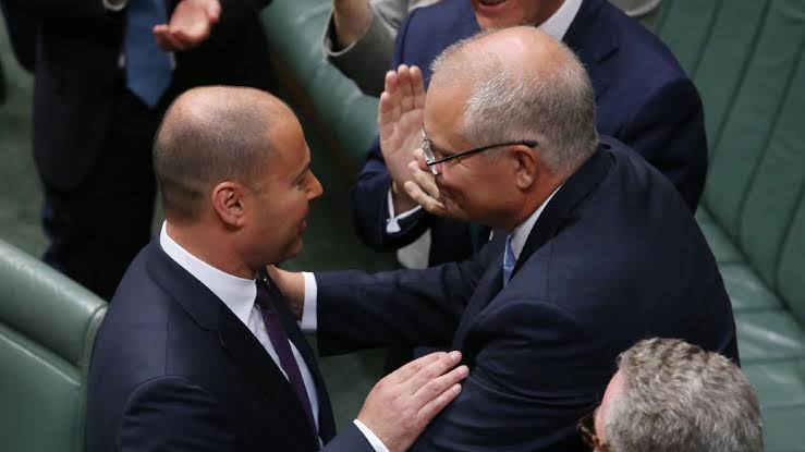 First published in Eureka Street on 3 April 2019. Image: Treasurer Josh Frydenberg congratulated by Prime Minister Scott Morrison after presenting his budget speech. Tracey Nearmy for Getty Images.