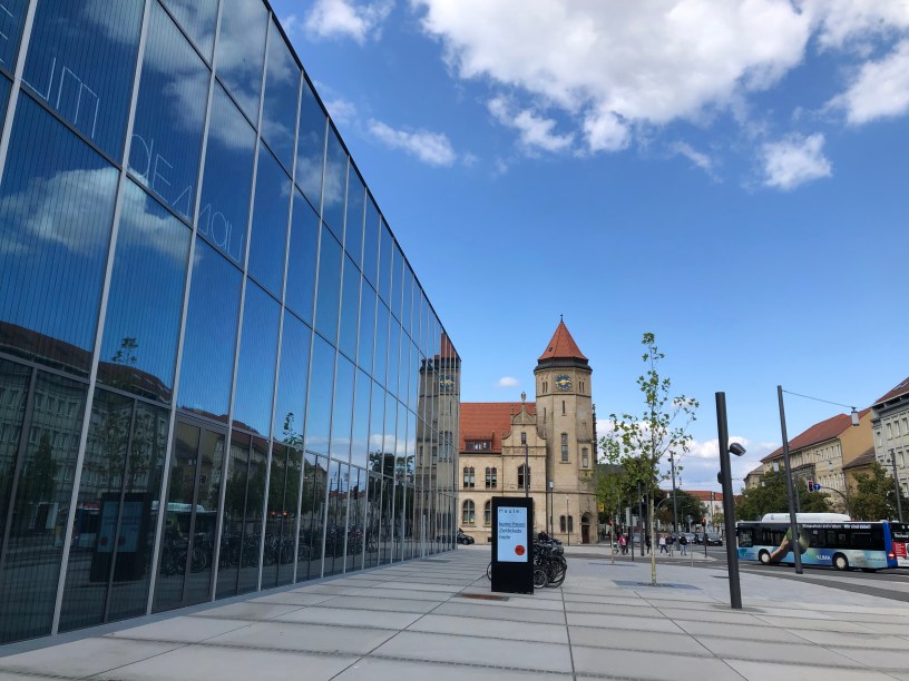 The German media response since Sunday has consistently been concerned with the Museum’s local disengagement – unfairly, given there’s been a year-round program of activity across Dessau – and also of the opening itself. On one side of the street, a roped-off VIP area for invited guests to enter the mirror-glassed structure; on the other, a jumbo screen showing the launch speeches behind a small stage where earlier a brass band had been playing incongruous tunes including Mark Ronson’s Uptown Funk and, in an unhappy irony, Michael Jackson’s Man in the Mirror.