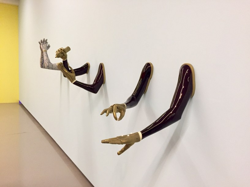 IMAGE: Aleksandra Domanović, Substances of human origin (Pose 1, 2, 3) (2015), installation view, Future Eaters, photograph by Esther Anatolitis.
