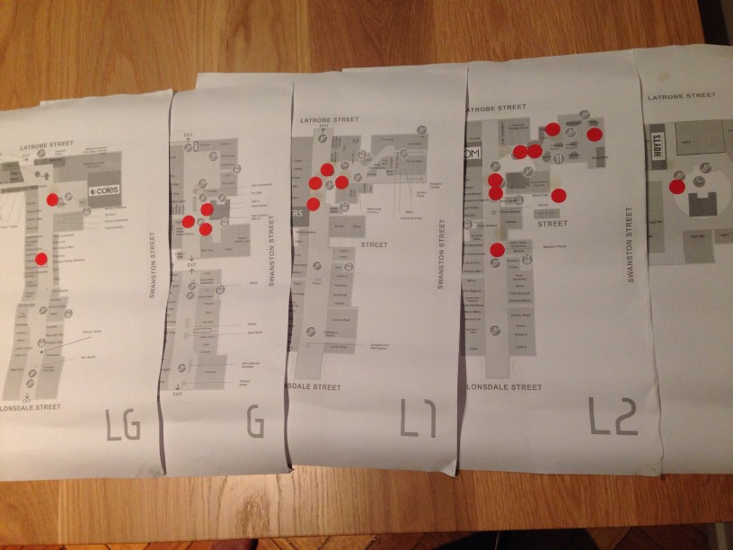 IMAGE: From my Step 1: Survey the Scene workshops, presented as part of The South Project 2010 international gathering How can a network activate a public? at West Space’s The West Wing in the Melbourne Central shopping centre.