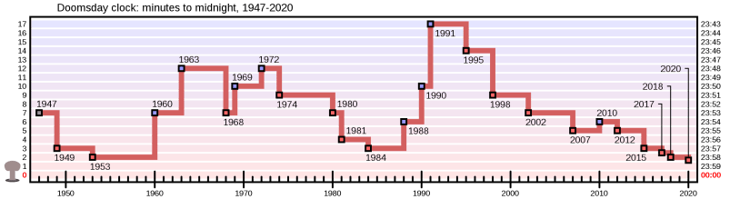 IMAGE: The Bulletin of the Atomic Scientists‘ Doomsday Clock shows that we are perilously closer to midnight than ever.