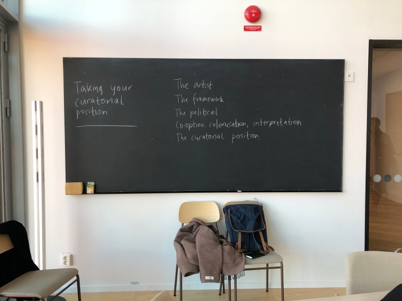 IMAGE: From Taking Your Curatorial Position, KTH Stockholm 2019. Photograph by Esther Anatolitis.