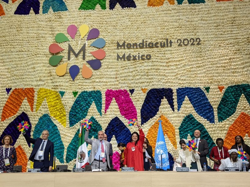 The historic ‘Declaration for Culture’, adopted unanimously by 150 UNESCO Member States, was followed by a statement by 55 States calling for Russia’s immediate withdrawal from Ukraine. When Russia responded, there was a mass exodus by the gathered delegates, including Australia, captured here by the UN Special Rapporteur for Cultural Rights.