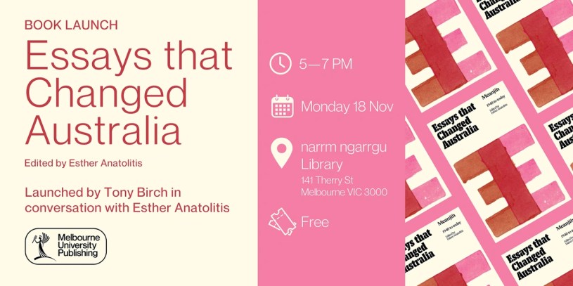 Join us at the narrm ngarrgu library’s beautiful event space to celebrate the launch of Essays that Changed Australia: Meanjin 1940 to today.